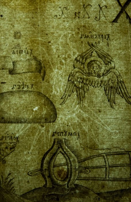 Если взглянуть на центр 25 листа «Букваря», на котором изображена буква «О», то на просвет будет виден водяной знак «Герб Амстердама». «Известно, что в России знак бытовал с 50-х годов XVII века, – говорит Светлана Корбут. – С 1734 года, когда Московский печатный двор перешёл на использование отечественной бумаги, знак исчез со страниц московских печатных изданий, а в рукописных книгах дожил до середины столетия или чуть дольше. На такой бумаге печатали Евангелие, царские указы и распоряжения. Стоила бумага дорого. «Герб Амстердама» – знак большой и сложный по композиции».