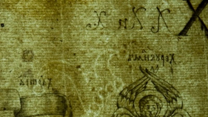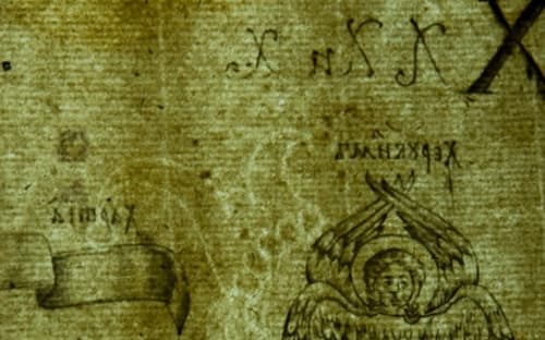 – В русских источниках XVII века бумагу с этим типом водяного знака называли «под дураком», или «под колпаком», – говорит Светлана Корбут. – Основное отличие знака XVII века от филиграни предыдущего столетия – вертикальная линия, идущая от среднего зубца воротника вниз, образующая фигуру в виде цифры «4» и оканчивающаяся тремя кругами пирамидкой вверх. На листах 8, 9, 15, 16, 23 нашего «Букваря» знак перевёрнут. На листе 10 «голова шута» направлена влево, а на листе 23 – вправо. Более чёткое изображение просматривается на листе 22. «Голова шута» с семью бубенцами, или с семизубцевым воротником, сопровождается литерой «АГ» – инициалы бумажного мастера или владельца мельницы. Поэтому специалисты относят этот знак к 1678–1680 годам. Поскольку у изображения шута на филиграни чёткие черты лица, можно предположить, что бумага с этим водяным знаком относится к середине XVII века, когда обобщённые, гротескные образы постепенно сменялись реалистичными, графичными портретами. «Наше изображение «головы шута» носит реальный, бытовой характер», – отмечает Светлана Корбут.