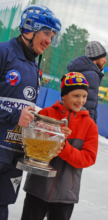 И когда финальный свисток ознаменовал победу, зрители просто встали: сейчас нам будут вручать кубок! Максим Гавриленко, капитан иркутской команды, получил трофей из рук губернатора Сергея Левченко.