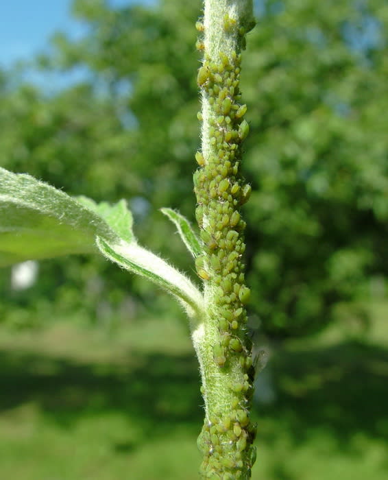 Молодые побеги яблонь также подвержены набегам вредителей. Чаще всего это яблонная тля и медяница. У первой яйца чёрного цвета, у второй – оранжевого. И борьбу с ними надо проводить в конце зимы или весной, но обязательно до распускания почек. Здесь требуется опрыскивание мест обитания этих вредителей раствором нитрафена.