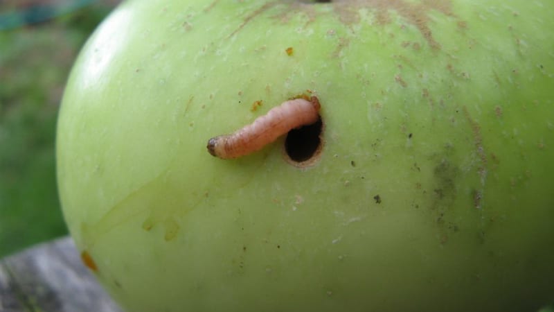 Старайтесь присмотреться и к коре деревьев. Хорошо, если вы с осени обработали её медным купоросом и побелили. А если нет… На коре, например, яблонь прекрасно зимуют златогузки, а под корой – гусеницы яблонной плодожорки. От первых можно избавиться с помощью секатора, срезав их гнёзда вместе с веточками. От гусениц яблонной плодожорки помогут ловчие пояса, но борются с ней по весне. В первую очередь – убирайте и уничтожайте поражённые плодожоркой плоды и проводите чистку старой коры, дезинфекцию 0,3% раствором хлорофоса или карбофоса. Помните, что яблонная плодожорка проводит зиму в почве или в коре деревьев в виде гусениц в плотном коконе. Когда же настаёт тепло, вредитель окукливается и в конце цветения яблонь он уже готов к вылету. Примерно месяц после этого плодожорка откладывает на листья и плоды яйца. Через пару недель вылупившиеся гусеницы уничтожают яблочки, поедая их мякоть и пробираясь до сердцевины.