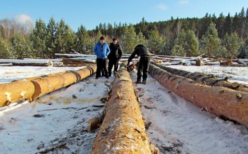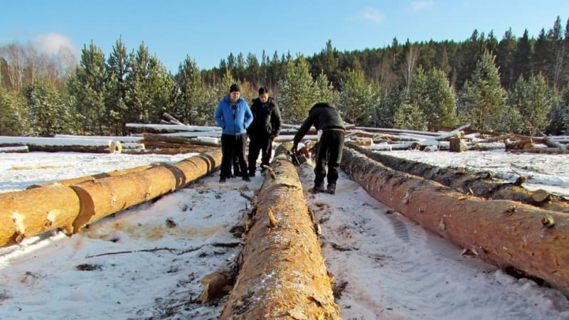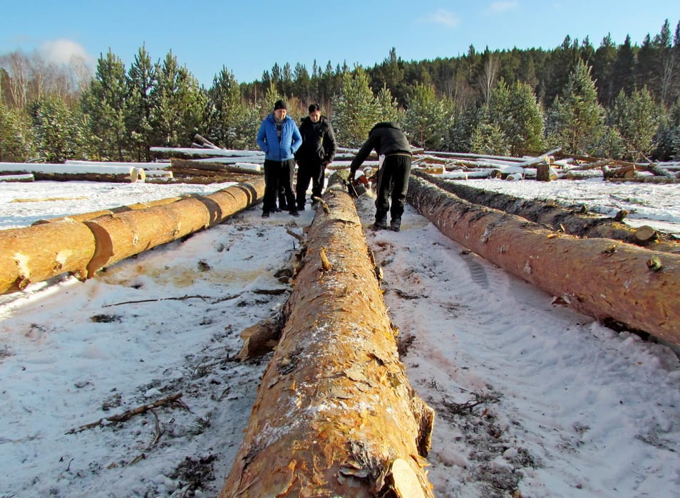 Асфальт, гравийка и несколько деревень позади. Машина, мягко переваливаясь на колдобинах лес­ной дороги с глубокими, окаменевшими колеями, катится по сосновому бору. Мы едем не абы куда. Мы «идём по следу», принятому ещё километра за полтора до леса на заброшенном поле. Для меня тот след – просто взрыхлённый колёсами снег, а Евгению Татаринову хватило беглого взгляда, чтобы определить – мы следуем за трактором Т-40 и «КАМАЗом». Типичный технический комплект бригады «чёрных» лесорубов. Впрочем, и «белых», работающих по закону, тоже.