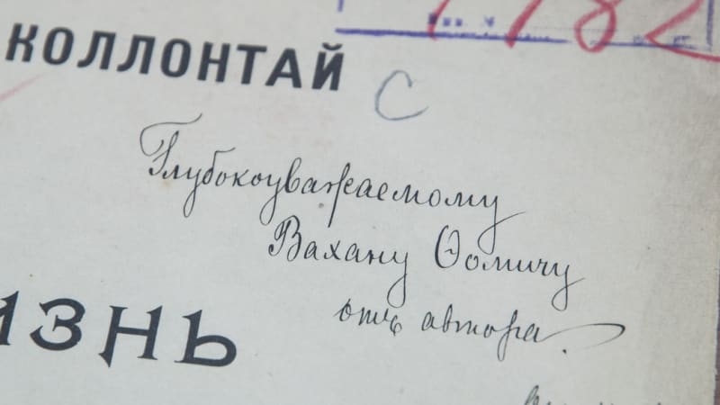 Однако важно не просто найти надпись и понять, что она принадлежит известному человеку, необходимо её атрибутировать, идентифицировать. Надпись на книге гласит: «Глубокоуважаемому Вахану Фомичу от автора. Октябрь 1903». Кто такой Вахан Фомич? Начались поиски, которые продлились несколько месяцев. Результат оказался положительным – Александра Коллонтай подписала книгу Вахану Фомичу Тотомианцу, известному экономисту, учёному, человеку, который впервые в России ввёл термин «кооперация». И посвятил этому вопросу очень много публикаций. Он учился за границей, как и Александра Коллонтай. По всей видимости, там они и познакомились. Но где, в какой стране?