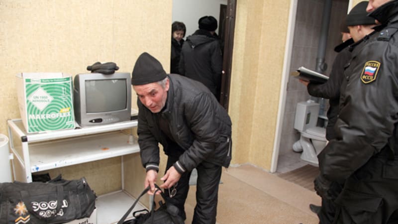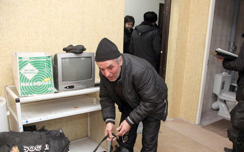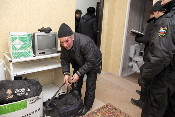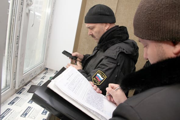 «Когда мы приехали сюда впервые, здесь были строители – граждане стран ближнего зарубежья. Мы проверили регистрацию у рабочих – с ней всё оказалось в порядке, они имели разрешение находиться здесь. Но поскольку дом будет снесён, рабочие должны покинуть его. До 10 утра сегодняшнего дня собственник обязан был вынести из здания своё имущество, а строителям необходимо было освободить помещения», – рассказал судебный пристав-исполнитель межрайонного отдела по особо важным делам Василий Поляхов. Он и его коллеги приехали к многоэтажке и открыли доступ в дом, несмотря на «мольбу» собственника не делать этого.