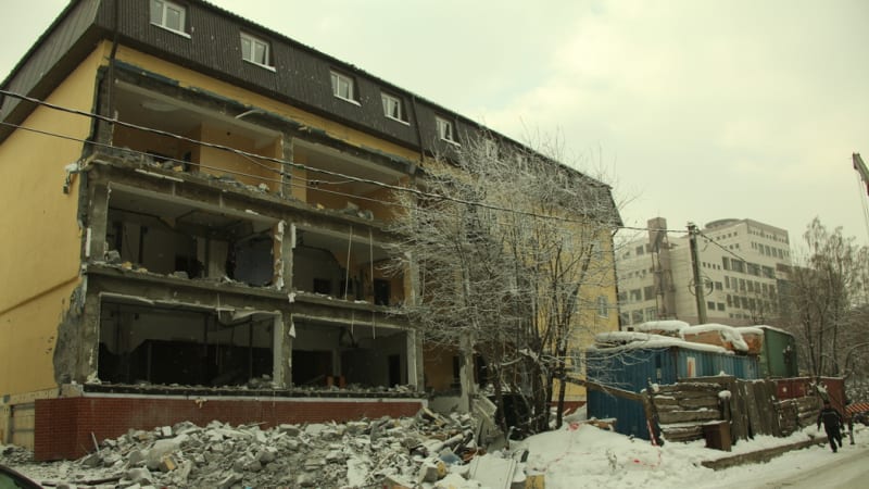 Лишь с третьей попытки администрации Иркутска удалось приступить к сносу незаконной постройки на улице Чернышевского. Владелец строения всеми путями пытался оттянуть момент ликвидации здания: заявлял ходатайства об остановке сноса, перегораживал подъезд металлическим контейнером, чинил другие препятствия. В конце прошлой недели подрядчик всё-таки начал разбирать здание. Работа предстоит нелёгкая: сейчас монтажники снимают окна и двери. Затем в дело вступит тяжёлая техника, экскаваторы примутся ломать стены.