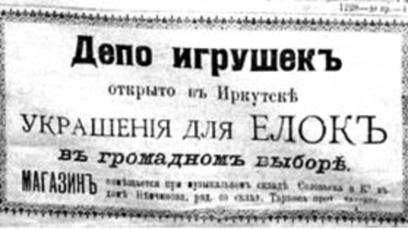 Газеты последней трети XIX века и начала следующего много рассказывают о новогодних ёлках в Иркутске. Очень интересно, с трогательными деталями. 1888 год в Иркутской женской гимназии на рождественском вечере гимназистки «танцовали до 4-х утра». «Несмотря на массу мальчиков, праздник прошёл очень чинно, хотя и весело», – сообщало «Восточное обозрение» об ещё одном, теперь уже мальчиковом новогоднем празднике. В 1889 году, как свидетельствуют газеты, в Иркутске «было устроено много ёлок и детских праздников», «хотя все ёлочные принадлежности и сюрпризы весьма недёшево обходятся в Иркутске и выбор их в магазинах невелик». Тем не менее игрушки продавали. В 1899 году при музыкальном складе Соловьёва и КО в доме Немчинова действовало «Депо игрушек», где «в громадном выборе» были ёлочные украшения. Судя по газетным заметкам, спустя 11 лет, в 1910 году, «Депо игрушек» Соловьёва продолжало успешно работать, ёлочные украшения можно было купить на углу Большой и 5-й Солдатской. К началу XX века к традиции иркутян ставить ёлку прибавились и новогодние подарки. В 1903 году сибирякам уже предлагали «тройной подарок на ёлку»: электрический карманный фонарь, электрический волшебный фонарь с шестью картинками и «прекрасную электрическую галстучную булавку». Часто устраивались ёлки для детей арестантов, павших воинов, бедных детей. Такие ёлки собирались на пожертвования иркутян, бедные дети могли получить не только сладости, а ещё и шапки, рукавицы, материал для рубашек.