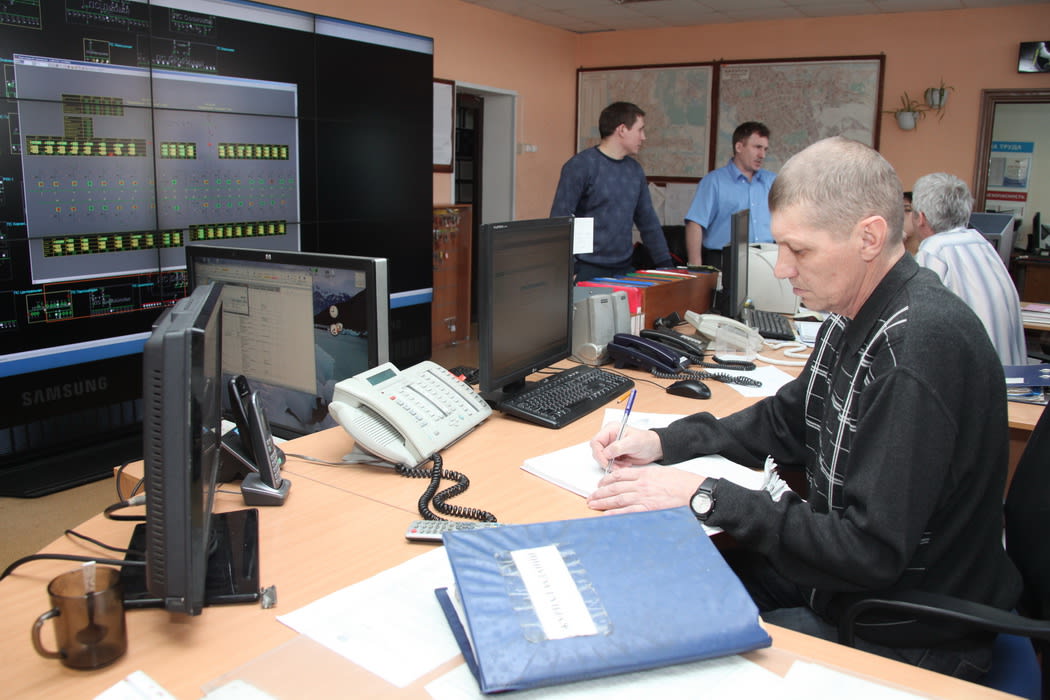 Киловатты энергии сетевики называют продукцией. «Она должна быть качественной и надёжной, что мы и обеспечиваем: осуществляем круглосуточное оперативно-диспетчерское управление работой сетей, контроль за электроснабжением потребителей в соответствии с договорными условиями, поддержание режима работы сетей, обеспечивающих их надёжную и экономичную работу, а также производим ликвидацию технологических нарушений», – говорит инженер ОДС по правому берегу Алексей Карпов, стоя у схемы энергоснабжения Правобережного округа. Несколько метров испещрённой чертежами бумаги полностью занимают одну из стен помещения диспетчерской. Для неподготовленного человека всё это напоминает шпионский шифр. «Да, с первого взгляда эта схема кажется чем-то нереальным, но после того как ознакомишься и изучишь её, ничего сверхъестественного в ней нет, – отмечает Карпов. – Вот, например, посередине выделена недавно введённая подстанция «Восточная», которая сейчас самая высокотехнологичная и крупная по мощности электроподстанция в городе».