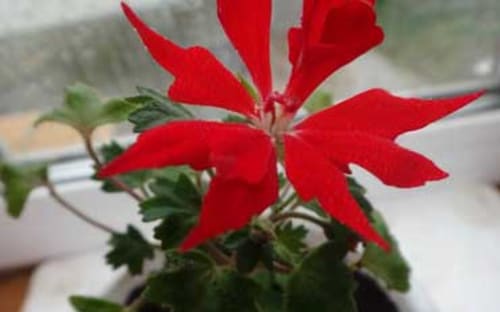 Очень люблю звёздчатые пеларгонии – лист резной, красивый, а форма соцветий напоминает гвоздику. Прекрасны розовые махровые соцветия с узкими лепестками в красную крапинку (RichardHodgson).