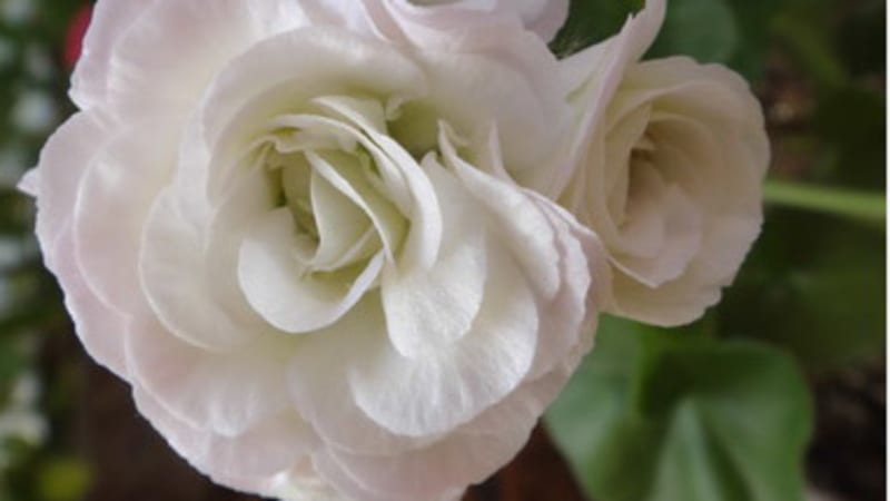 Самые белые розы у PACViva-Carolina – плющелистной пеларгонии. Полностью распускаясь, розы приобретают чуть сиреневатый оттенок. Махровые белые цветы у плющелистной PACWhitePerl. У Vitti– белые цветы с малиновыми штрихами в центре. У зональной AppleBlossomRosebud белые розочки имеют зелёную сердцевину и чуть розовые края лепестков. MarbackaTulpan– тюльпановидная пеларгония с нераскрывающимися белыми тюльпанами, соцветия которых создают прекрасный пышный букет. Сорт интенсивный, соцветий множество. VictisSnow – звёзчатая, цветок белый с узкими лепестками, соцветие плотное, аккуратное.