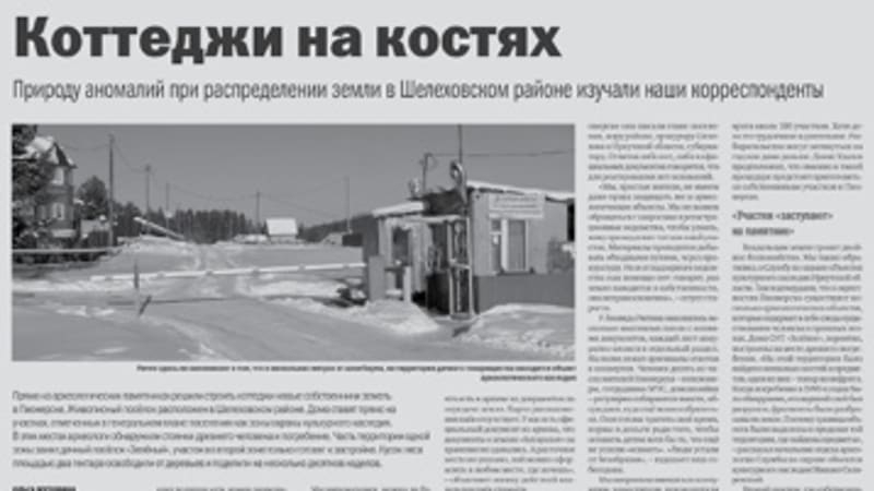 Администрация Шелеховского района презентует в Интернете местные достопримечательности. Знаковые места муниципалитета – окрестности посёлка Пионерск, там обнаружены стоянки и погребение древнего человека. Но ни в одной из презентаций не написано, что несколько лет назад землю, на которой находится перспективная для изучения территория, администрация отдала под дачную застройку. Сегодня погребение в буквальном смысле «похоронено» под жилыми улицами. Мы продолжаем рассказывать читателям подробности сделок с землёй, на которой расположены археологические объекты (см. «ВСП» от 16 февраля 2016 года, материал «Коттеджи на костях»).