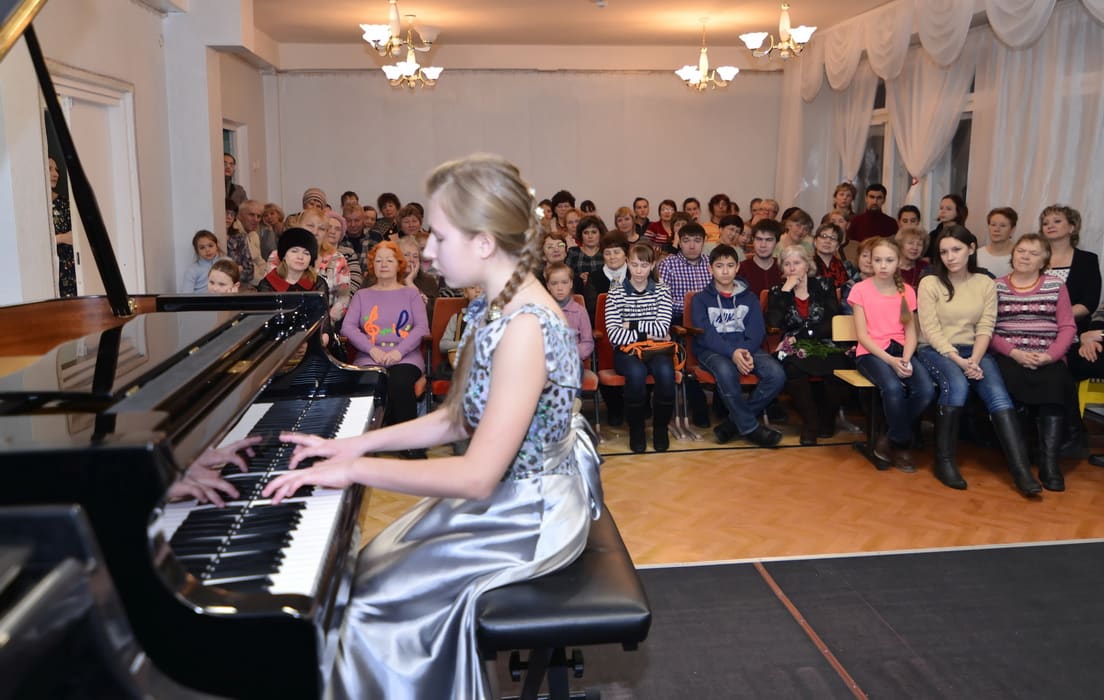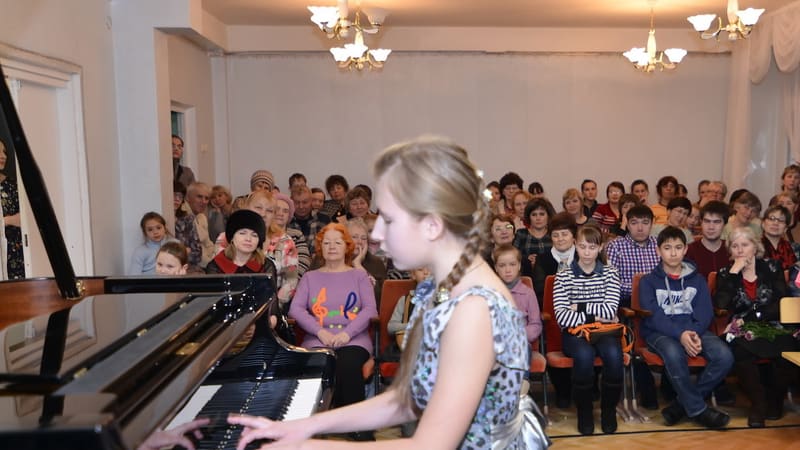 Музыкальная гостиная в этот февральский вечер собрала десятки байкальчан, поклонников высокого искусства – фортепианной музыки. В заполненном до отказа небольшом концертном зале школы собрались учителя и врачи, родители, бабушки и дедушки юных пианистов. После выступления фортепианного дуэта Рябцовских, исполнивших «Весёлый вечер» и «Снежинки» Цфасмана, настала очередь юных музыкантов. Ученица 2-го класса Света Антипова исполнила «Испанскую мелодию» Аллерма, Диана Щербакова, ученица 3-го класса, сыграла сложную пьесу Парфёнова «Черёмуха над водой». Несмотря на свой юный возраст, обе девочки уже успели отметиться на престижных музыкальных состязаниях. Света стала финалистом областного фестиваля «Viva muzik – 2015», а Диана – обладателем диплома 1 степени недавно закончившегося в Иркутске Международного конкурса «Жемчужина России». Порадовали собравшихся и выступления выпускников фортепианного отделения школы. Учащийся 7-го класса Антон Портяной исполнил «Ноктюрн» Грига, выпускница нынешнего юбилейного года Рада Мордвинцева – виртуозную «Прялку» Лисберга и «Ноктюрн» Шопена, её брат Андрей Мордвинцев сыграл Этюд-картину Рахманинова и «Сказку» Метнера. Педагог Андрея и Рады – их мама Оксана Николаевна, под руководством которой исполнительское мастерство детей растёт год от года. Брат и сестра Мордвинцевы хорошо известны далеко за пределами области, они лауреаты международных, всероссийских и региональных конкурсов.
