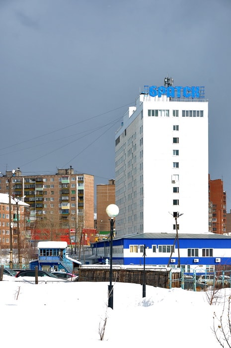 Крупнейший город Иркутской области – это Братск. Нет, мы не ошиблись: если брать его площадь – 428 квадратных километров, или 42800 гектаров, – то он занимает семнадцатое место в России, не только в полтора раза превосходя по размерам областной центр, но и опережая три современных миллионника: Нижний Новгород, Красноярск и Ростов-на-Дону. Осью нестандартной для сравнительно небольшого города планировки стала Братская ГЭС, вокруг которой он фактически начал строиться в пятидесятых годах. Всё начиналось на левом берегу Ангары с затопленного ныне Зелёного городка – того самого палаточного Братска, прославленного поэтами-песенниками Сергеем Гребенниковым и Николаем Добронравовым, – к которому потом присоединились посёлки Падун и Энергетик, отделённый от Центрального района федеральной трассой, а на правобережье – Гидростроитель.