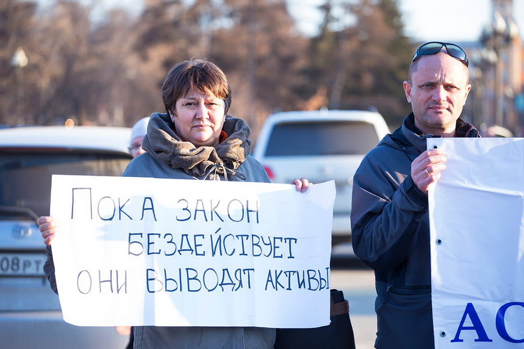 «Левченко! Услышь голос рабочих!» – скандируют участники митинга. 24 марта бывшие работники предприятия-банкрота «Иркутскпромстрой» вышли в сквер Кирова, чтобы напомнить властям о своей беде. Последний раз они получали жалованье больше года назад. Владимиру Болотину, много лет проработавшему на предприятии, руководство задолжало 150 тысяч рублей. Общий долг компании, по данным областной прокуратуры, превышает 20 млн рублей. С прошлого года сумма сократилась на 7 млн рублей, однако 470 сотрудников по-прежнему ждут положенных выплат. Все они, кроме бухгалтера и генерального директора, уже уволены из «Иркутскпромстроя». В похожем положении остаются в регионе 5976 человек, причём это работники тех предприятий, которые подали сведения о своих долгах в Иркутскстат. Девять десятых этой суммы приходится на 10 организаций, находящихся в различных стадиях банкротства, оставшиеся 10%, или 28,8 млн рублей, – на 5 ещё работающих организаций.