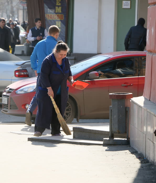 – К нам претензий нет – мы же «дорожники», а примостки домов (придомовые территории) должны убирать дворники. И в этом разделении обязанностей сложилась забавная ситуация. Когда утром наши идут убирать территорию – все дворники прячутся, нам своё «добро» оставляют, – она показывает на узкие тротуары вдоль домов на Марата. – Они привыкли, что «Автодор» убирает все центральные улицы, и не сильно напрягаются.