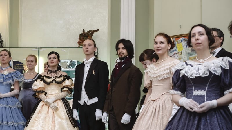 Десять лет назад никто в Иркутске не знал о существовавшей в то время творческой студии исторического танца – так называла себя компания энтузиастов, которым хотелось провести когда-нибудь настоящий бал. Не тот, когда только речи и шампанское, и не тот, когда танцуют на оценку и получают призы. А такой – как до революции, когда все участники знают программу и умеют её танцевать, когда все одеты в соответствии с выбранной эпохой, когда вокруг старинный зал, а под ногами – гладкий паркет. Однако первые балы проходили в спортзалах, которые украшались тем реквизитом, что находился дома у участников, под ногами был пол со щелями, в которых вязли каблуки дам, а костюмы нередко изготавливались в последнюю ночь из портьер и недорогого креп-сатина. Сюжетной основой бала становились литературные произведения и любимые кинофильмы.