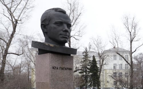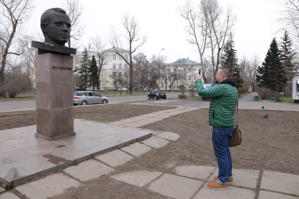 Разговаривая, мы проходим мимо арт-объектов, которые точно можно считать самостоятельными высказываниями. Первый – бюст Юрия Гагарина, который несколько лет назад прославился на всю страну написанным на постаменте нецензурным криком отчаяния об утраченном величии России. Второй – грамматически ошибочная надпись «Цой жыв» на сером бетоне парапета. «Это прямо русская парадигма», – улыбается гость «Прогулок по городу», снимая «арт-объект» на телефон. Через пару сотен метров нам попадается третий образчик – граффити, чей автор признавался в нежных чувствах к своей возлюбленной и сравнивал её с Солнцем, но кто-то «исправил и дополнил» надпись, добившись своеобразной рифмы: «Оля К., я люблю тебя больше Тупака».