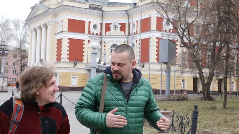 Два раза – уже совпадение, но ещё не тенденция: когда мы встречаемся с новым гостем «Прогулок по городу», погода опять портится. Над Иркутском, где ещё вчера светило весеннее солнце, идёт лёгкий дождь. Но жителя Санкт-Петербурга этим не испугать, и для человека, регулярно проводящего отпуск в городе на Неве, в этом тоже есть своя прелесть. Прежде чем начать прогулку, мы пережидаем непогоду в кафе на углу Карла Маркса и Ленина (улиц, конечно, а не политических деятелей). Как и в смене ролей ведущего и ведомого во время «Прогулки»: Денис Рубин сразу признаётся, что Иркутск за пределами фестивальных площадок практически не знает.