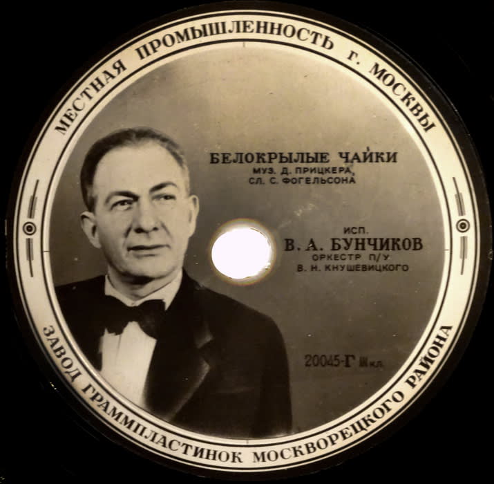 Этикетка грампластинки с фотопортретом Владимира Бунчикова – популярного в 1940–1960 гг. певца