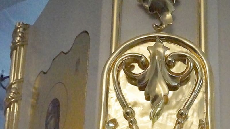 Новый иконостас привезли в Иркутск за неделю до Троицы. Вместе с ценным грузом из Палеха прибыли и мастера, которые за несколько дней смонтировали главное украшение нижнего придела. Иконостас получился не очень большим, всего 3,2 метра в высоту, в нём размещаются 25 икон разного размера. Совсем немного по сравнению с семиметровым «верхним» иконостасом, который чуть больше года назад также доставили из Палеха.