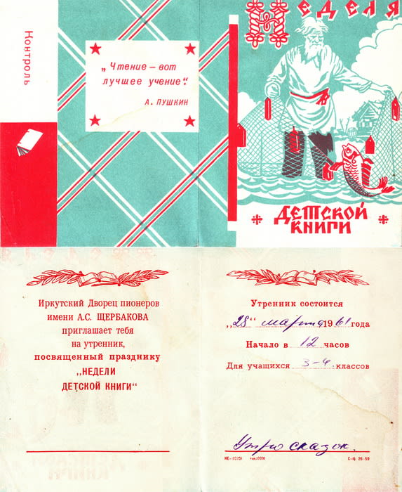 Передо мной пригласительный билет, вышел он из типографии 55 лет назад. «Иркутский дворец пионеров имени А.С. Щербакова приглашает тебя на утренник, посвящённый празднику «Недели детской книги»…». Малышам, которые по этим билетикам когда-то попали во Дворец на «Утро сказок», сегодня уже идёт седьмой десяток лет. Удивительно, как этот билет вообще сохранился. История Дворца, казалось бы, общеизвестна. Однако знаете ли вы, что открыт он был не в 1938 году, как свидетельствуют официальные его хроники, а годом раньше – в 1937-м? Что при Дворце был собственный настоящий корабль, а поделки иркутских школьников хранились в Москве, в музее подарков Сталину?