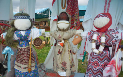 Во время праздника работала ярмарка мастеров декоративно-прикладного творчества. Поистине уникальные работы областных мастеров можно было увидеть своими глазами: картины из бересты, вышивку, традиционных кукол, керамику, авторские костюмы. В посёлке Атагай Нижнеудинского района мастера «Центра славянской культуры» самостоятельно вырастили и обработали лён. Вырастить лён в сибирских условиях непросто. Мастера Центра заинтересовались производством льна ещё в 2008 году, в 2009-м им удалось получить первую льняную нить, а только через четыре года, в 2013-м, – собственные семена. Идея вырастить лён родилась в ходе экспедиционной работы: мастера узнали у старожилов посёлка, что на этой территории в 20-е годы прошлого столетия выращивали одно из древних культурных растений, и решили попробовать освоить этот процесс самостоятельно. Сегодня на ярмарку они привезли льняные салфетки, рушники, знаменитый альбом, в котором полностью описывается процесс получения льняной нити, огромные традиционные куклы, которые символизируют творческие мастерские «Центра славянской культуры». Как рассказала руководитель центра Любовь Ванцай, в этом году они посадили лён для получения льняного масла.