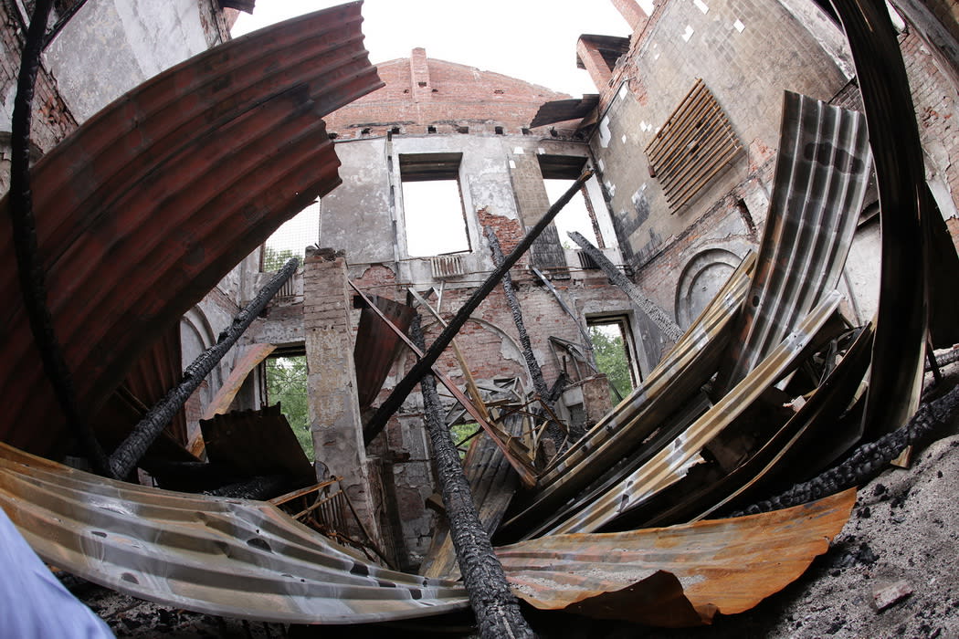 11 июня ситуация повторилась: казармы вновь загорелись. И вновь поджог. Планируя репортаж, мы рассуждали: встретятся ли нам охранники? Может быть, нас и вовсе не допустят к памятникам? Вопросы отпали сами собой, как только мы подошли к зданиям настолько близко, чтобы увидеть выбитые стёкла. Обычно окна домов на время консервации заколачивают, закрывают от рук вандалов. Казармы всем своим видом показывали: «У нас нет хозяина».