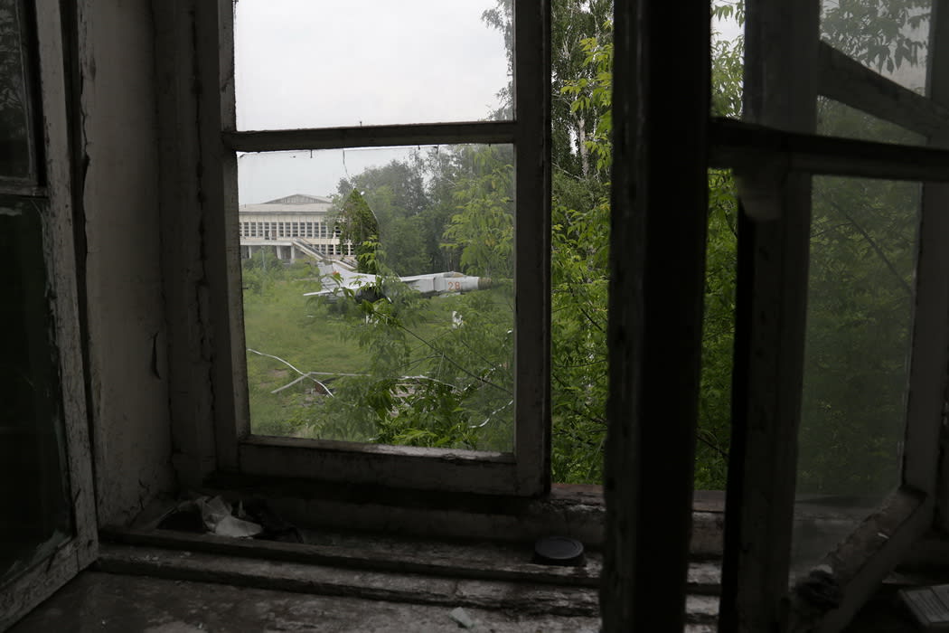 Почти не повреждены помещения в третьем блоке. К нему неудобно подъехать на автомобиле, поэтому пока здесь цела проводка, плафоны, выключатели, на месте даже радиаторы и трубы отопления. Видно, что в блоке незадолго до отъезда военных был проведён качественный ремонт: в огромных окнах поставлены пластиковые стеклопакеты, межкомнатные двери новые, полы и стены не облупились.