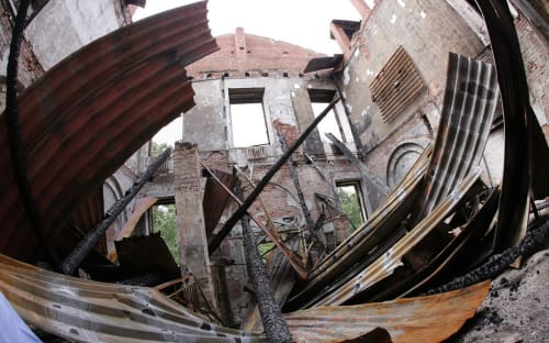Выбитые окна, сорванные двери, спиленные батареи и сантехника, разрушенные стены, сгоревшая кровля. Свалка в бывшей аудитории, бутылки из-под спиртного в коридорах, экскременты в бывшей комнате отдыха. Именно такими нас встретили корпуса казарм на территории ИВВАИУ. Никакой охраны объектов культурного наследия нет, здания разрушаются, их поджигают. Между тем планам региональных властей открыть на месте военного училища кадетский корпус исполнился год. Приступить к работам мешает «земельный вопрос».