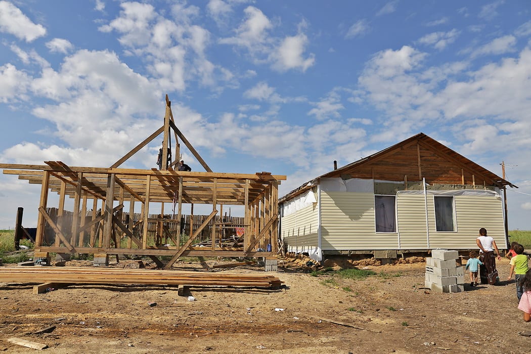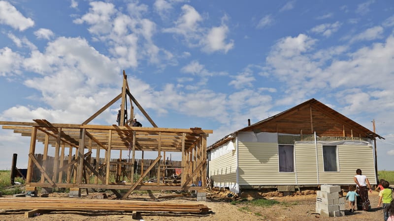 Женщины имеют ввиду, что часть домов после суда была снесена, площадки выровнены и отсыпаны щебнем. На новом месте табор барона Гумана обжился быстро. Высадились они в чистом поле – первое время спали в машинах, потом в палатках. За долгую тёплую осень они успели построить три однокомнатные времянки, по одной на семью. Перезимовали в тесноте, но зато не в холоде – местная администрация помогла многодетным семьям дровами. Холода стояли сильные, а особенно донимали ветра, на вершине холма достигающие сногсшибающей силы. Но ничего, смеются цыганские жёны, ветер цыгану только в радость. Одну времянку уже разобрали, когда построили дом барону.