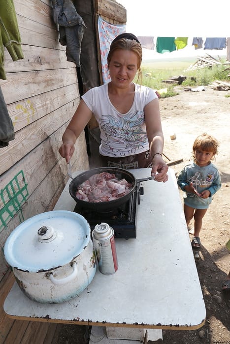 – Там пять соток – на сколько это семей? Нам не хватает! Нас здесь живёт десять семей, почти семьдесят человек! Нам нужно на работу устраиваться – нас не берут, говорят: «Вы цыгане, мы боимся, вы будете наркотиками торговать!» Да если бы мы торговали наркотиками – мы бы жили так? У нас бы были крутые машины, и мы бы не ходили гадать, чтобы детей кормить! Ребята металлолом сдают, старые аккумуляторы ищут.