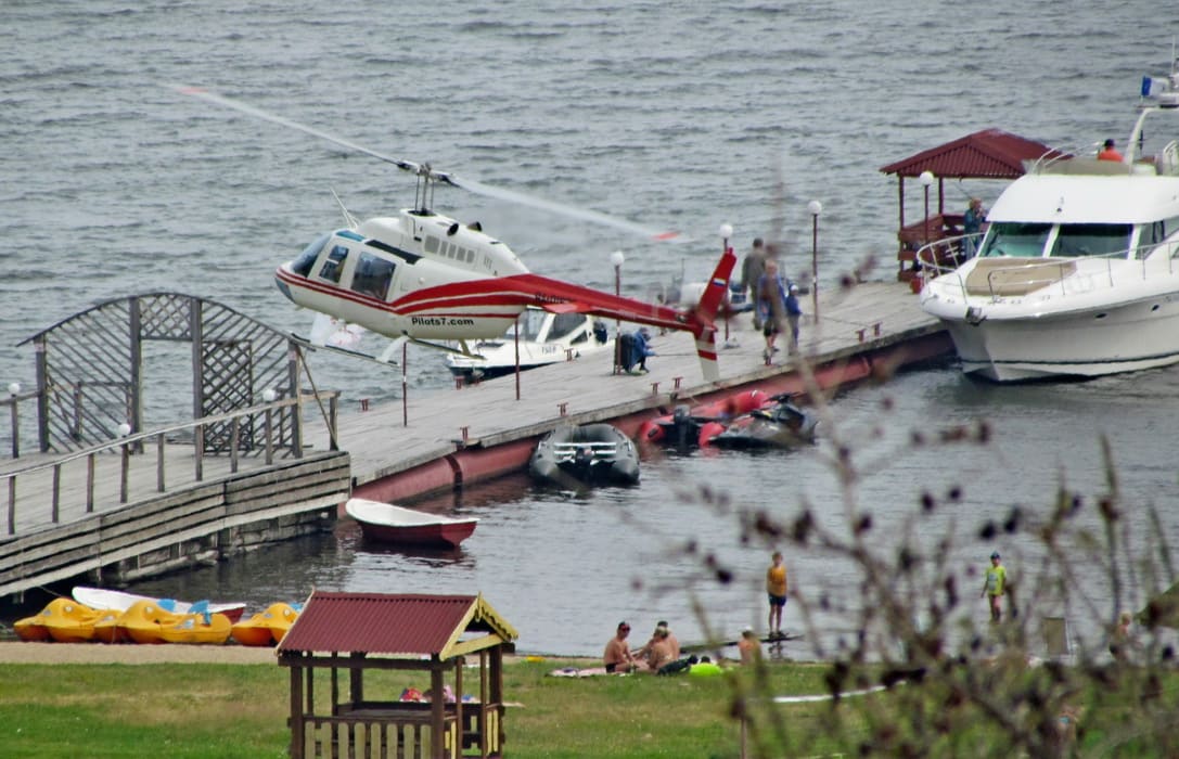 Вспомнил эти слова, когда в кадре моего фотоаппарата был джип, заехавший по пояс в воду, и «крутой мужик», стаскивающий гидроцикл с телеги. Здесь, на пляже, дно твёрдое, поэтому гидроциклы постоянно спускают на воду именно здесь. Купающиеся давно к такому привыкли, и в этом конкретном месте в воду никто не лезет. Малыш один несмышлёный зашёл аж по самую грудь, обрадовавшись твёрдому дну. Так мама, увидев это, с перепугу очень громко на него закричала: «Вылазь немедленно! Тебя там машина задавит!» А ещё на этом пляже часто «отдыхает» вертолёт. Он всех желающих за 10 тысяч рублей сколько-то минут над Байкалом катает. Вертолёт взлетит, а отдыхающие, те, что плавали в это время, из воды выйдут и по пляжу свои вещи собирают, ветром от винтов раскиданные. Приземлится – опять собирают. Но скоро научились. На взлёте и посадке либо телом, либо камнями свои платья-майки-шляпы придавят – и нет проблемы.
