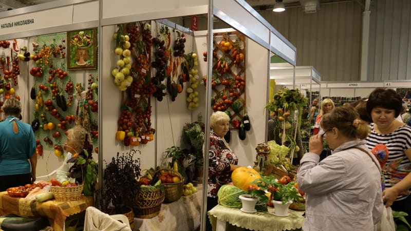 Действительно, здесь есть чему восхититься и осознать, что в Иркутске можно вырастить практически любую садовую или огородную культуру. Было бы желание… А этого у иркутян с лихвой. Вы бы видели их заворожённые глаза от изобилия красок представленных экспонатов и буйства фантазии их авторов. Нынче даже подойти к стендам ангарского клуба «Академия на грядках» было сложнее, чем в прошлые годы… Иркутяне также хотят иметь семена многих новинок из коллекции ангарчан. Особым спросом пользовались семена коктейльных и перцевидных сортов томатов Малинка, Измаил, Таганка, Везувий, отечественных сортов лука Кремень, хорошо хранящегося в зимнее время, огурца Троя, перца Магно (оранжевый), Раиса (жёлтый), Ред барон (красный). Взвешивали баклажаны чуть ли не по полтора килограмма. Цветная капуста сорта Марина достигла рекордного веса – около трёх килограммов, и к ногам гостей она тянулась длинным веером красивых листьев, невольно ассоциирующий с роскошным хвостом павлина.