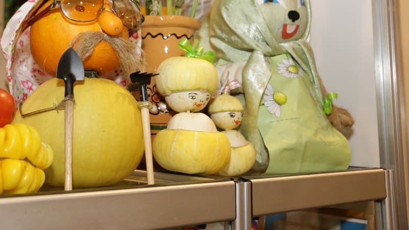 Кстати, о павлине. Он также роскошно присутствовал в очаровательной экспозиции шелеховского городского клуба «Жарок» и отличался только овощным привкусом. Выделялись здесь и экзотические букеты сочных тюльпанов из перца в декоративной вазе из тыквы.