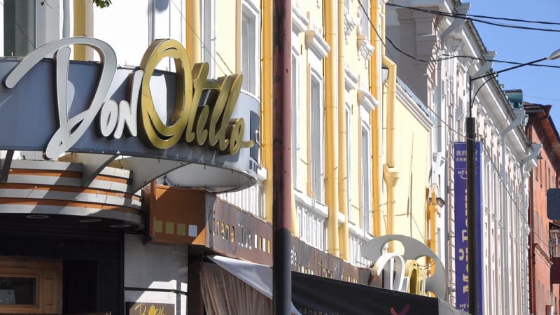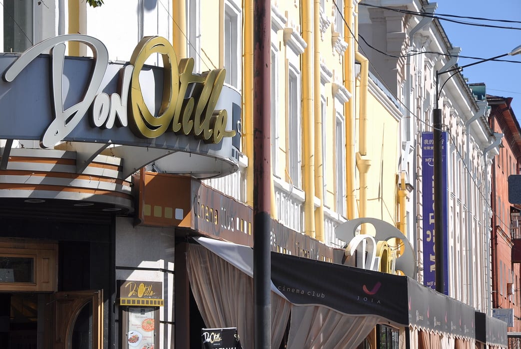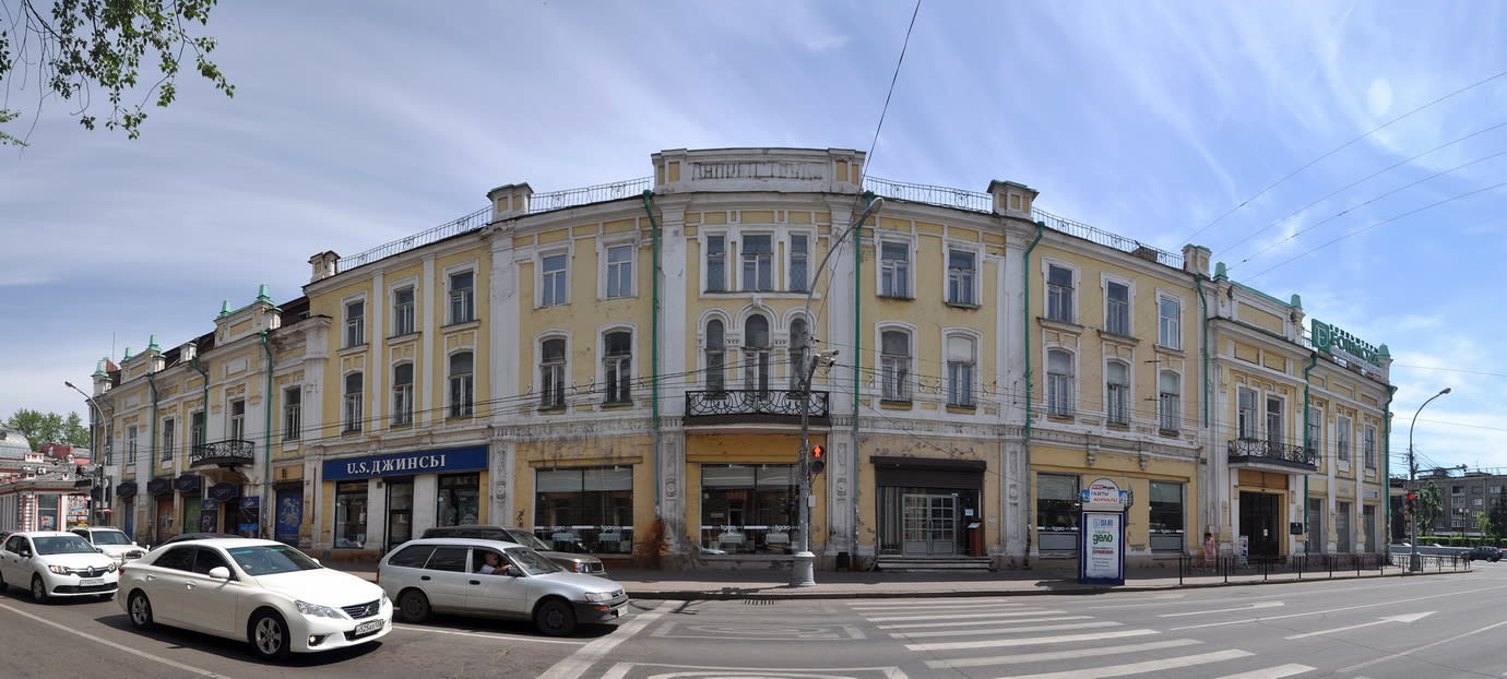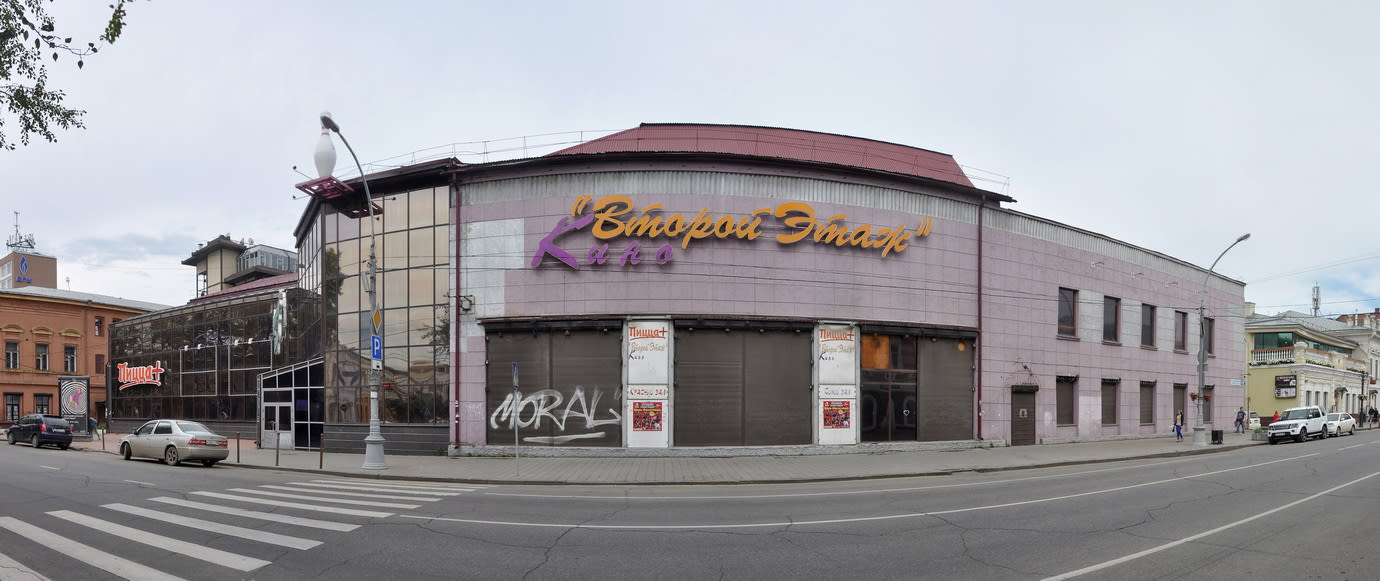 Кассы кинотеатров в Иркутске начала ХХ века открывались в четыре часа пополудни. По праздникам, однако, они начинали работать с часу дня. И, как свидетельствовали современники, по улице Большой с этого момента решительно невозможно было пройти – только возле «Художественного декаданса», подсчитали в газете «Восточная заря» (её репортёр Оксана Владимировна Запольская тоже стала персонажем «Прогулки»), собиралось до трёх тысяч человек. Столпотворение возникало в той её части, которая находилась ближе к Амурской. Дело в том, что именно в нескольких кварталах ближе к перекрёстку нынешних Карла Маркса и Ленина были сосредоточены первые и крупнейшие кинотеатры города: это и «Дон-Отелло» с «Гранд-Иллюзионом» или «Большим театром» (в советское время он станет «Гигантом», а сейчас известен как «Второй этаж»), созданные Антонио Микеле Донателло, и «Художественный декаданс» Константина Ягджоглу. Киноконцертный зал «Глобус» располагался и в едином комплексе зданий с рестораном первого класса «Модерн» и гостиницей «Централь», которая современным иркутянам известна как Дворец труда. Позднее он стал «Новым», а в сентябре 1933 года – «Комсомольцем». В конце сентября 1934 года здесь и вовсе разместился Дворец юного ленинца.