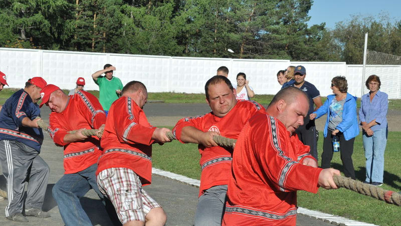 Состязания по перетягиванию каната были самыми долгожданными. На спортсменов собрались поглазеть все участники, кто был в это время не занят в других видах программы, и многочисленные зрители. Канатчики из всех команд были как на подбор. Зрителей на всякий случай попросили отойти подальше, чтобы не мешали, и началось… Азарт, крики, подбадривания, нечеловеческие усилия участников, напряжение у болельщиков… Нервы не выдерживали, но толстенный канат выдержал нормально, хотя пару раз было ощущение, что вот-вот лопнет. Несколько раз были такие моменты, когда казалось, что уверенно побеждает одна команда. Но за несколько минут до вожделенной победы канат замирал неподвижно и потом уходил в другую сторону, принося победу противникам. В результате напряжённой борьбы лучшими стали атлеты из «Тулунугля». Богатыри из «Черемховугля» заняли второе место, из рудоремонтного завода – третье.
