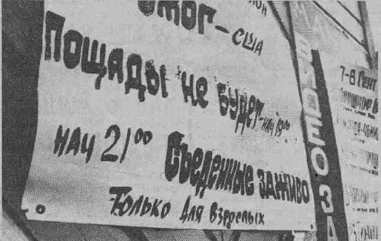 К этому моменту видеосалоны и всё, что вокруг них, стали называть «видеопорнорэкетом». В драматическом и музыкальном театрах, начинавших благородно – как видеолектории, лекции вскоре почти сошли на нет, раз в месяц шёл, к примеру, «Доктор Живаго». Зато по 30–40 сеансов в неделю – зубастики и ходячие мертвецы. Даже в видеосалоне «Центральном» в ДК Дзержинского, что считался «образцово-показательным», и то не удержались от своей интерпретации классики. В салоне шёл фильм «Леди Макбет Мценского уезда» с подстрочником на афише: «Фильм об ужасной эротике купеческой России».