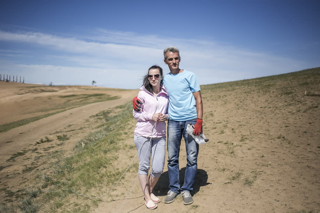 Семья из Красноярска ищет последнюю свободную лунку. Накануне бур сломался, а копать ямы вручную в глинистой и каменистой ольхонской почве непросто. В результате лунок резко стало меньше, чем желающих посадить дерево. Хотя были и те, что соглашался копать сам. А накануне рекорд по количеству деревьев поставила москвичка Вероника Джиоева. Сначала она высадила на берегу Байкала четыре дерева. Потом рассказала о проекте своим родным в Москве, они её поддержали и попросили посадить ещё. Получился семейный лес – 29 лиственниц. Большая часть деревьев посвящена членам семьи Вероники, остальные – разным историческим личностям (от Жанны д’Арк до советских вождей). На Байкале Вероника впервые. «Но теперь я навсегда связана с этой землёй, – говорит она. – Корнями этих деревьев».