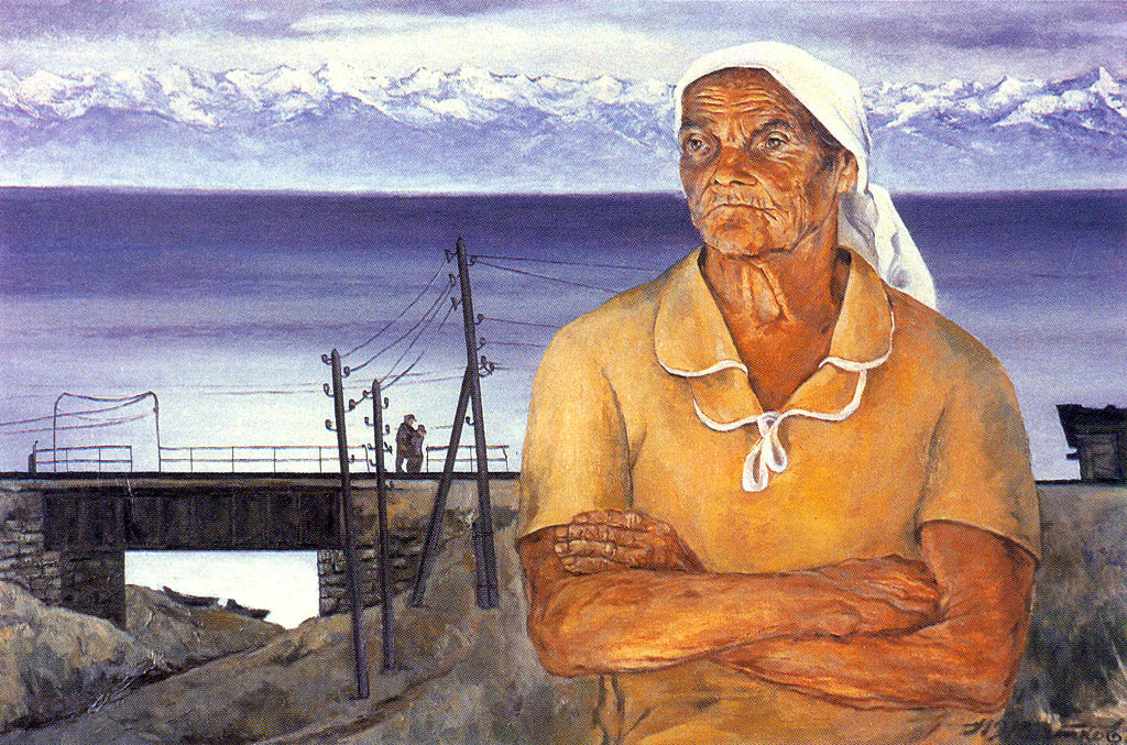 На картине «Женщины Байкала», ставшей визитной карточкой художника, изображена соседка Житкова Феодосья Дмитриевна Бологова, которую в посёлке просто называли баба Феня. Жизнь её была нелёгкой, счастья в ней было значительно меньше, чем горя. Детство пришлось на первую мировую войну и Октябрьскую революцию, юность – на тяжёлые послереволюционные годы, молодость – на голодные тридцатые, зрелость – на вторую мировую войну. Её жилистые загорелые руки знали всякую работу, даже самую тяжёлую. «Есть женщины в русских селеньях», – говорил Николай Некрасов о таких людях. Прожив 84 года, ушла из жизни баба Феня. Но осталась она стоять на фоне Байкала в скромном наряде, задумавшись, вспоминая пережитое на сибирской земле.