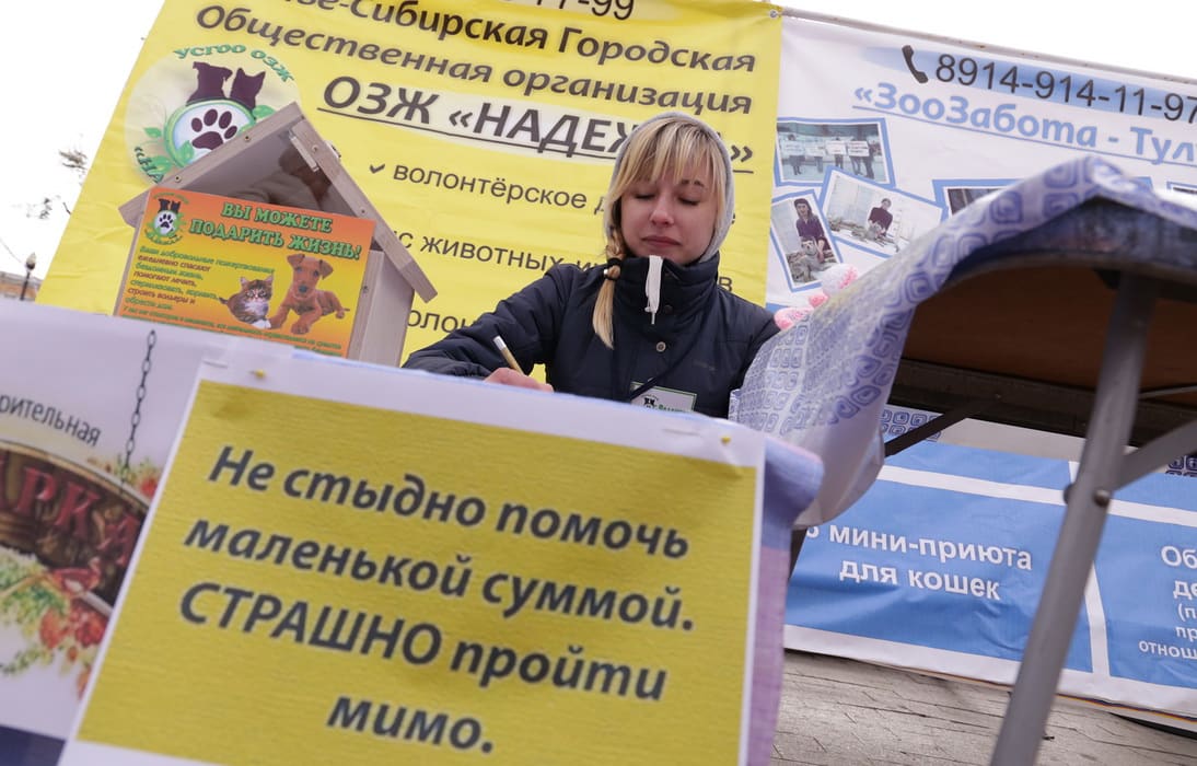 Неделю назад, в позапрошлые выходные, в центре Иркутска вокруг фонтана на сквере Кирова энтузиасты, волонтёры и владельцы приютов отмечали «профессиональный праздник» – День защиты животных. Праздник проходил весело и задорно – были представлены стенды полутора десятков общественных организаций и частных приютов, на сцене выступали самодеятельные артисты, продавались сопутствующие рукодельные сувениры и аксессуары. Тут же принимались денежные пожертвования от благотворителей да и вообще любая помощь. Однако несколько активных участников этого мероприятия пришли в мрачно-решительном настроении – специально для встречи с «Иркутским репортёром». Среди них председатель зоозащитной организации из Ангарска «Зоо38» Татьяна Лисник и организатор приюта-передержки «Дорога к дому» Даша Чудо.