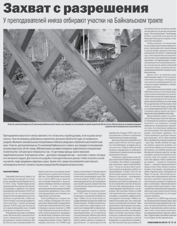 Суд Иркутского района буквально завален земельными делами. Рос­имущество предъявило тысячи исков владельцам садоводческих и дачных участков, оказавшихся на землях лесного фонда. Претензии возникают по большей части к новым товариществам, созданным в последние годы. Ветераны же бывшего иняза получили свои участки в 1997 году. В награду за хорошую работу лучшим педагогам вуз передал часть земель бывшего спортивно-оздоровительного лагеря «Чайка», который к тому времени перестал существовать. С каждым владельцем был заключён договор аренды – люди были уверены, что пользуются землёй на законных основаниях. Наша газета не один раз подробно рассказывала о сложившейся ситуации.