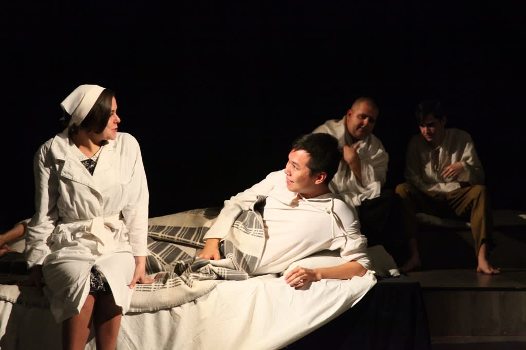 – Виктор Астафьев, «Звездопад». Театр «Предместье» из иркутского политеха, режиссёр Лариса Серикова-Киркица. Здесь пронзительно правдив Тимур Дашиев в роли Михаила. Обыкновенная история про первую любовь: тяжело раненный солдатик чудом выжил, влюбился в свою спасительницу-сестричку и снова ушёл на войну.