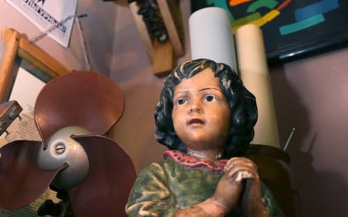 И мы с другом хотели, как герои фильма «Старики-разбойники», переодеться в рабочих, двери снять, унести и ручки открутить. Хорошо, один московский приятель остановил нас: «Вы что творите-то?» Этот ажиотаж давно прошёл, но мимо странного старого предмета я на улице не пройду. Хотя принцип избирательности тоже действует. Если бы я собирал всё, что находил когда-то на улицах или в разрушенных домах, в мастерскую было бы невозможно зайти.