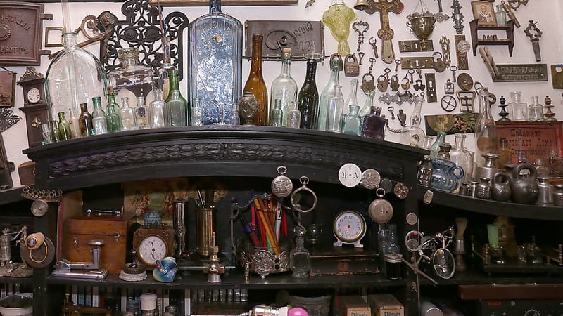 Мастерскую дизайнера Владимира Соколова можно сравнить с антикварной лавочкой, средой обитания коллекционера или даже жилищем Плюшкина. И ни одно из этих сравнений не будет неправильным. Да, Плюшкин! Но Плюшкин, несущий в дом хлам строго прямого назначения. Да, в какой-то степени Соколов – коллекционер. Потому что несколько десятков печных заслонок, а также утюги, керосиновые лампы, стеклянные бутылочки производства ушедшего под воду Тальцинского стекольного завода – это всё коллекции, это всё иркутская история. И, конечно, мастерская живо напоминает хороший антикварный магазин, только без ценников. Есть за что зацепиться взгляду даже не искушённого в антиквариате человека. Но ни одно из этих сравнений не будет до конца верным и истинным. Потому что в первую очередь это мастерская дизайнера. И любая вещь в ней может стать частью большой композиции или до мелочей продуманного интерьера.