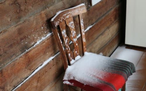Невооружённым глазом «масштаб бедствия» оценить оказывается непросто. Иосиф Владимирович, несмотря на солидный возраст, остаётся рачительным хозяином. Внешне дом не выглядит аварийным, запущенным. Фасад строения обшит деревом, стены внутри покрыты штукатуркой. Не видно никаких зияющих дыр и подтёков. Если присмотреться внимательно, заметно, как одна сторона дома просела в сторону соседей. «Дом стоит «на стульчиках», это не фундамент, а несколько подпорок в разных местах. Брёвна внизу прогнили, от этого пол проваливается», – объясняет хозяин. Кстати, соседи с другой половины построили на своём участке новый дом и переехали. «Ввёрху тоже всё прогнило. Когда на улице холодно, на стене образуется куржак», – показывает Иосиф Владимирович.