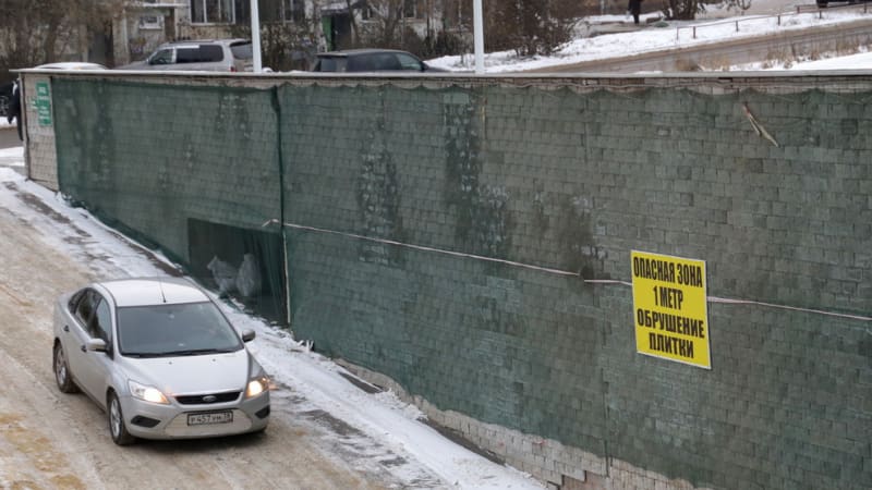 И если проблему с осыпающейся отделкой удалось как-то нейтрализовать, то сама стена продолжает двигаться, накреняться в сторону автопарковки.