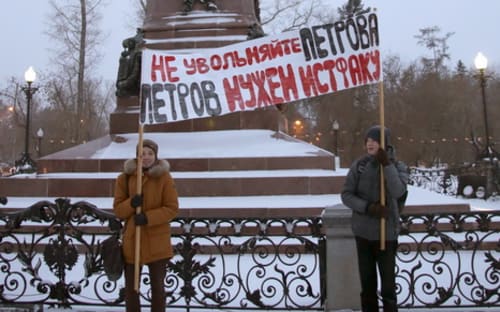 Бывший заместитель декана исторического факультета ИГУ Алексей Петров намерен обратиться в суд, требуя своего восстановления на рабочем месте. Профком вуза на прошлой неделе проголосовал против увольнения Петрова. Однако ректор посчитал, что должен выполнить предписание прокуратуры, и Алексей Петров был уволен 16 ноября за 40 минут до назначенного в его поддержку пикета. На пикете собралось около 200-220 человек, в их числе преподаватели, студенты, участники проекта «Прогулки по старому Иркутску».