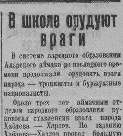 Декабрьским вечером 1937 года в набор редактор «Восточки» сдал короткую статью «В школе орудуют враги». Подписана она была неким А. Порменюком. Он рассказывал о врагах, окопавшихся в школе улуса Алзохига Аларского района. Обнаглевшую банду врагов народа, как доносил автор, возглавлял учитель Валентин Вампилов…. Его сыну тогда едва исполнилось 4 месяца. Александр Вампилов отца так более и не увидит. Примерно через месяц Валентин Никитич будет арестован, а ещё через месяц – расстрелян. Подробности того доноса, что привёл отца Вампилова к расстрелу, были неизвестны. Оказывается, все эти годы «Восточка» хранила их на своих страницах.