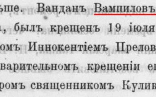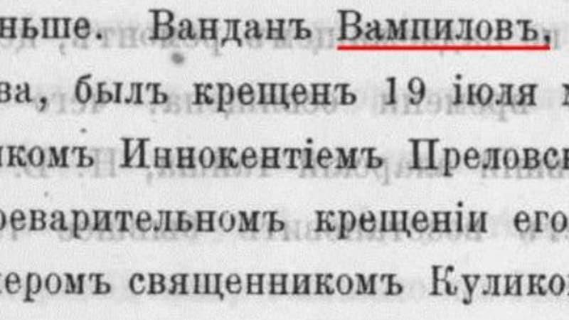 «Труды православных миссий Иркутской епархии» сохранили свидетельство о крещении прадеда Александра Вампилова