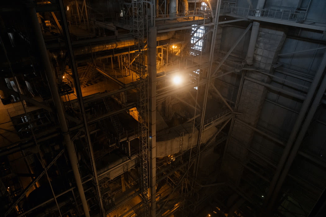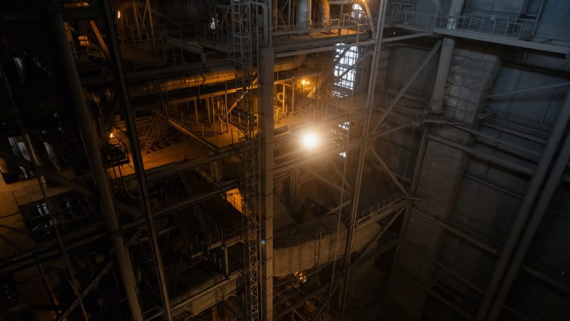 Если щиты управления невелики в силу блочной компоновки станции, то сам главный корпус огромен пропорционально мощности и, как следствие, немалым размерам агрегатов. В машинном зале достаточно пространства не только для шести установленных турбин, но и для ремонтных площадок. Высота котла – 64 метра, отметка обслуживания барабанов находится в 59 метрах от пола. В лифте, на котором мы поднимаемся, ей соответствует кнопка восьмого этажа. Однако высота ощущается совсем не так, как с балкона обычного жилого дома: такое расстояние мозг оценивает совершенно иначе. «На нулевой отметке ездит транспорт, ему не препятствовать», – заранее предупреждает Чернышов. На широких проездах, вокруг которых высятся переплетения металлических конструкций, нам, правда, не попадается ни одной машины. Но, глядя на их размеры, понимаешь, что здесь без труда пройдёт, скажем, самосвал «КамАЗ», подъехавший за сухой золой уноса из расположенных чуть выше бункеров.