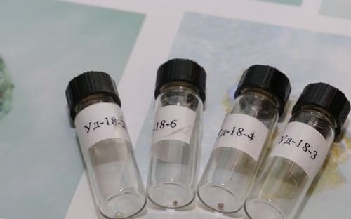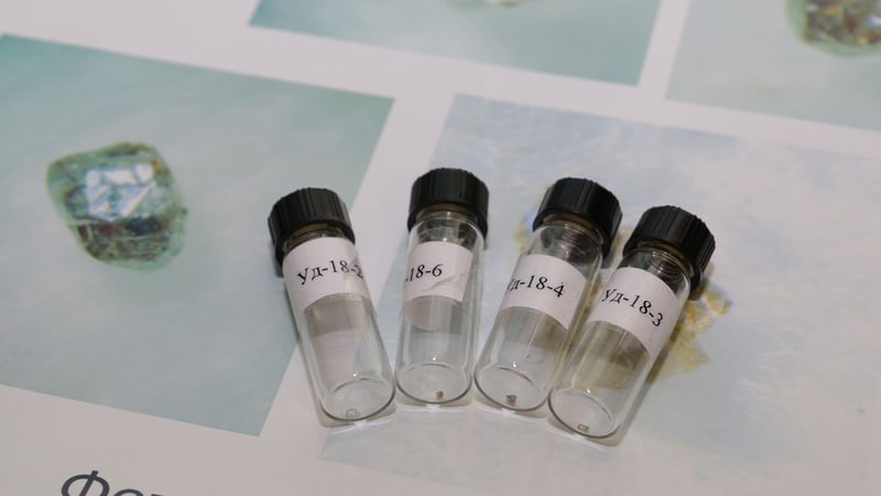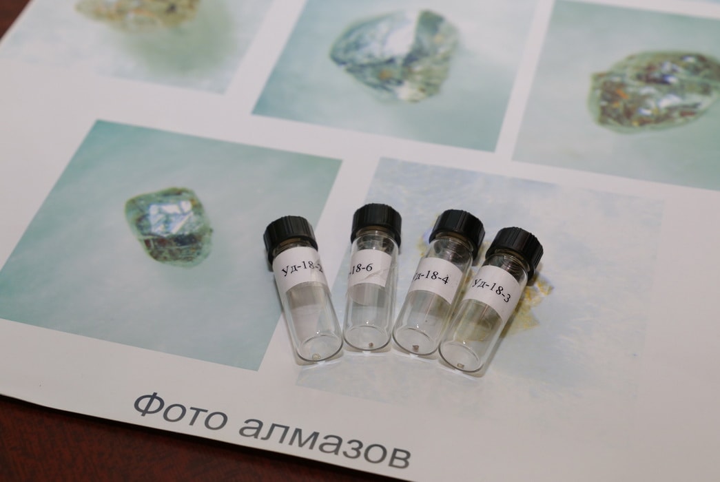 «Это большая удача. Думаю, если бы мы сделали мелкообъёмную пробу, то нашли бы и 50–60 кристаллов», – рассказывает Егоров и демонстрирует увеличенные фотоснимки своих находок, а также сами образцы – микрокристаллы в стеклянных колбочках, которые разглядеть в подробностях можно только через микроскоп.